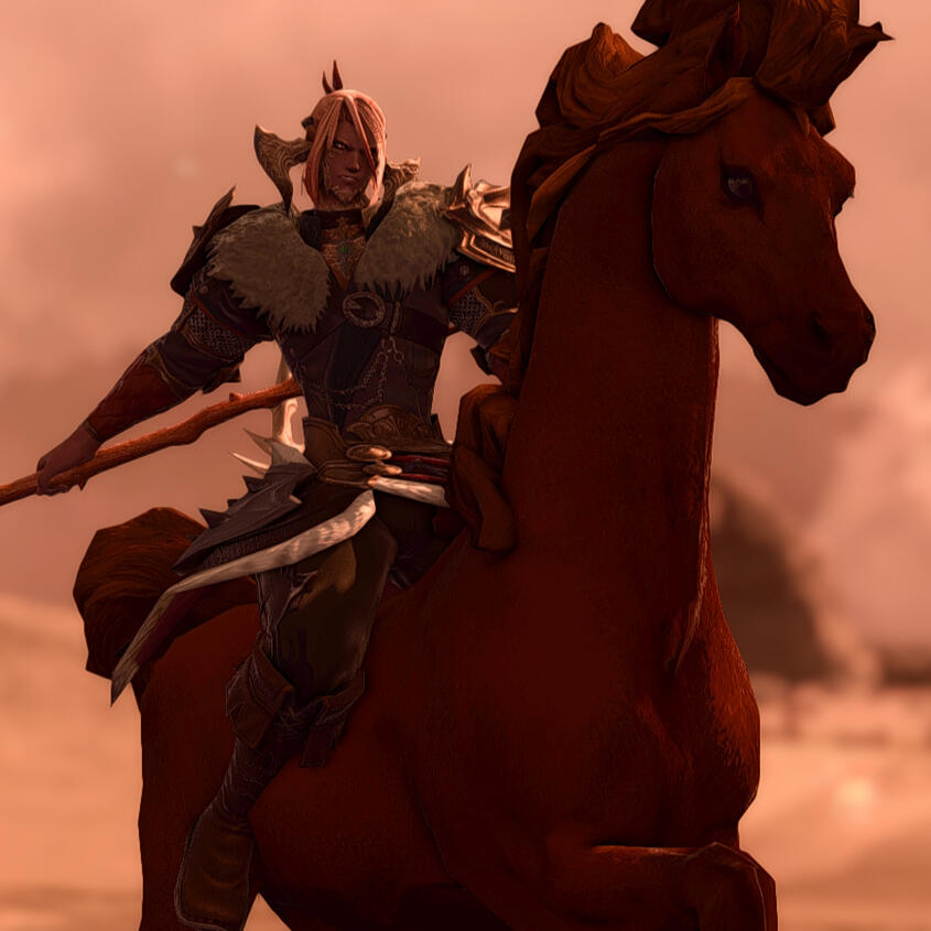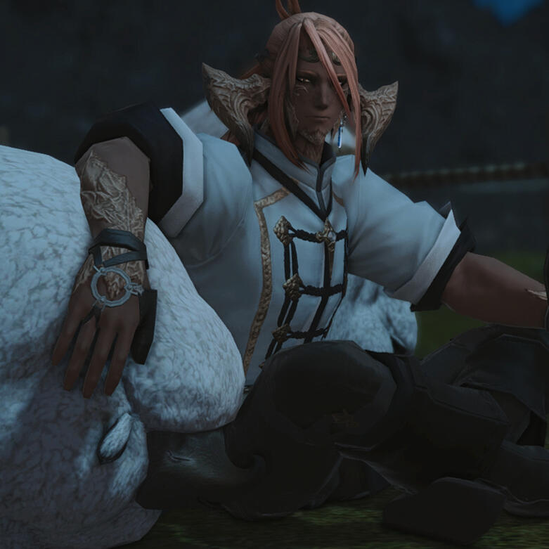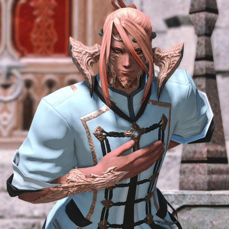 Ishgard is his latest stop, but not for good reason. Left to the cold nation after his master’s untimely passing, it was time for a new shift in his life: seek another person to pledge loyalty to, or assimilate to the city as more than a busybody? Chances are that the heal-adept warrior lingers by the hunt boards to make his living; maybe joining his challenge or watching it unfold will be in your favor.—Brothers of another scale